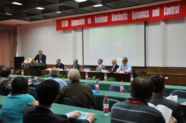 由國(guó)際理論與應(yīng)用力學(xué)聯(lián)合會(huì)(IUTAM)主辦,浙江大學(xué)承辦的國(guó)際理論與應(yīng)用力學(xué)聯(lián)合會(huì)非線性隨機(jī)動(dòng)力學(xué)與控制研討會(huì)(IUTAM Symposium on Nonlinear Stochastic Dynamics and Control)于2010年5月10日至14日在杭州舉行。該會(huì)議得到國(guó)家自然科學(xué)基金(NSFC)以及美國(guó)科學(xué)基金(NSF)的聯(lián)合贊助。會(huì)議由中國(guó)科學(xué)院朱位秋院士和美國(guó)佛羅里達(dá)大西洋大學(xué)Y.K. Lin教授擔(dān)任共同主席。會(huì)議邀請(qǐng)了該領(lǐng)域國(guó)內(nèi)外知名學(xué)者參會(huì),參會(huì)代表都是通過邀請(qǐng)投稿的方式產(chǎn)生。來自11個(gè)國(guó)家(或地區(qū))44名代表參加了討論會(huì),其中:中國(guó)內(nèi)地代表20位;美國(guó)代表8位;意大利代表3位;波蘭代表3位;德國(guó)代表2位;中國(guó)臺(tái)灣代表3位;來自印度、俄羅斯、奧地利、法國(guó)、中國(guó)澳門等地的代表各1位,其中知名學(xué)者包括:B.F.Spencer, P.Spanos, C. Soize, W. Wedig, T.T. Soong, K. Sobczyk, A. Naess等。會(huì)議共同就“非線性隨機(jī)動(dòng)力學(xué)與控制”等前沿、熱點(diǎn)問題展開了深入的交流與討論。