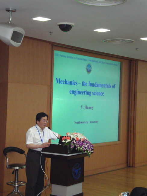 2010年5月25日晚7點(diǎn),浙江大學(xué)第二屆空天學(xué)術(shù)文化節(jié)系列活動(dòng)之黃永剛教授學(xué)術(shù)報(bào)告會(huì)在紫金港校區(qū)國(guó)際會(huì)議中心138隆重舉行,現(xiàn)場(chǎng)聽眾爆滿,氣氛非常熱烈。來(lái)自美國(guó)西北大學(xué)土木環(huán)境工程系、機(jī)械工程系Joseph Cummings講席教授黃永剛作了題為“Mechanics ——the Foundamendals of Engineering Science”的報(bào)告,報(bào)告會(huì)由航空航天學(xué)院副院長(zhǎng)、博士生導(dǎo)師黃志龍教授主持,航空航天學(xué)院部分師生及09級(jí)本科生參加了本次報(bào)告會(huì)。