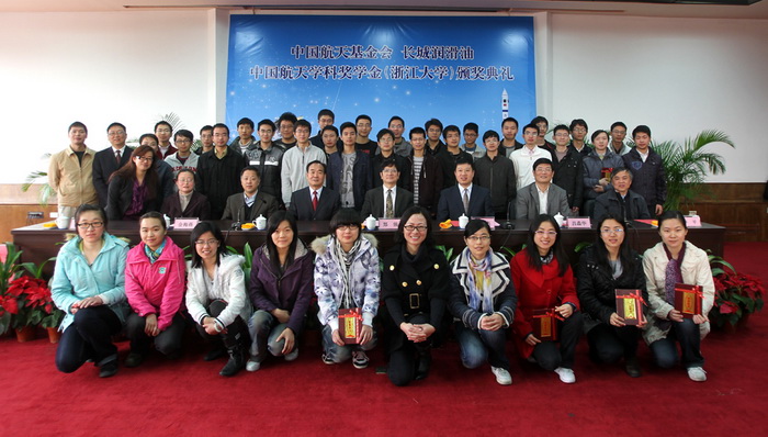 中國航天基金會·長城潤滑油中國航天學科獎學金首屆頒獎典禮于11月23日上午10:30在我校玉泉校區邵科館隆重舉行。中國航天基金會秘書長張玉江將軍、中國石化潤滑油公司黨委茍連杰副書記、中國航天基金會事業發展部部長殷建剛大校、中國石化潤滑油公司總經理辦公室皮天福副主任以及我校黨委鄭強副書記、黨委學工部金海燕部長、黨委研工部呂淼華部長、航空航天學院李平副院長出席了頒獎典禮,典禮由航空航天學院黨委謝紅梅副書記主持。