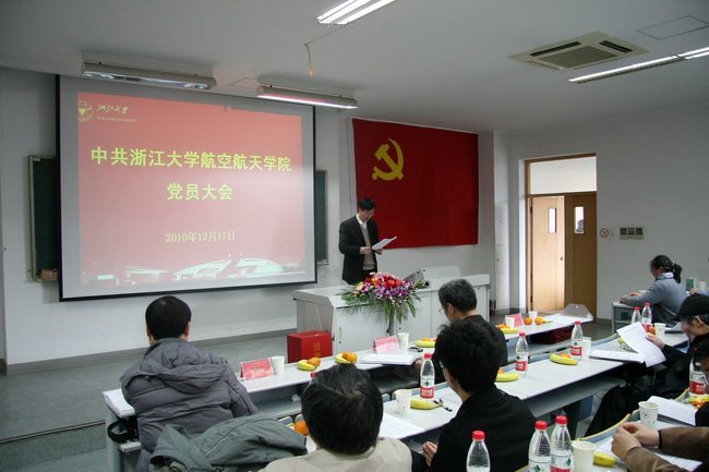 在大會的第一階段,本屆黨委書記吳丹青向大會作了學(xué)院黨委工作報告。她全面回顧了學(xué)院建院近四年來黨委的主要工作,認真總結(jié)了本屆黨委工作取得的重要經(jīng)驗。四年來,學(xué)院黨委以鄧小平理論和“三個代表”重要思想為指導(dǎo),以深入開展學(xué)習(xí)實踐科學(xué)發(fā)展觀活動為載體,圍繞學(xué)院的各項中心工作開展基層黨建工作,為學(xué)科隊伍建設(shè)、教學(xué)科研服務(wù)和安全穩(wěn)定等工作提供了堅強的政治保障和組織支撐,為學(xué)院的新一輪發(fā)展奠定了良好的基礎(chǔ)。她相信經(jīng)過換屆選舉,新一屆學(xué)院黨委將會在總結(jié)本屆工作經(jīng)驗的基礎(chǔ)上,繼續(xù)以圍繞中心、服務(wù)大局、推動發(fā)展的工作思路和改革創(chuàng)新精神,不斷推進學(xué)院黨的建設(shè),為學(xué)院的科學(xué)發(fā)展、和諧發(fā)展提供堅強的政治、思想和組織保障。學(xué)院常務(wù)副院長、本屆黨委組織委員鄭耀還作了關(guān)于學(xué)院黨費收繳、使用和管理情況報告。在熱烈的掌聲中,大會一致審議通過了中共浙江大學(xué)航空航天學(xué)院委員會工作報告和黨費收繳、使用、管理情況報告。
