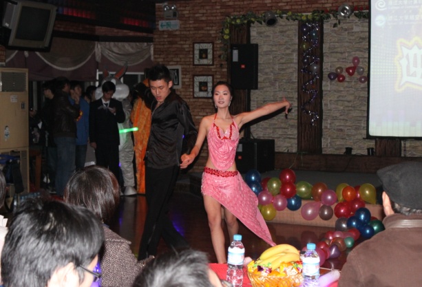 在第一篇章中,節目和游戲穿插進行,同學們各展其才,為在場觀眾奉上了藝術饕餮。航院尹琴同學的《刺鳥》有如天籟,臺下的粉絲紛紛獻上鮮花。捧腹給力的小品《武林外傳之淘寶初創》中惟妙惟肖的表演給觀眾帶來陣陣歡笑。浪漫的法國之聲《東京et巴黎》演繹了別樣的異域風情,抽獎環節和游戲環節把晚會一次次推向高潮,驚艷的海豚音Opera贏得了臺下觀眾的陣陣掌聲,高雅的鋼琴獨奏讓大家共同領略了那唯美的音樂世界,航院馮瓊華同學及其舞伴王燕青同學帶來的曼妙流轉的華爾茲《印象西湖雨》更是驚艷全場,壓軸整個文藝表演。第二篇章的狂歡舞會在進行了兩個刺激、好玩的游戲后,以兔子舞狂歡結束。