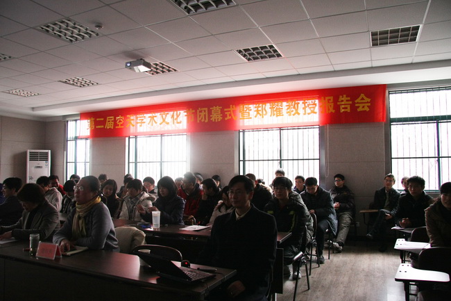浙江大學(xué)第二屆空天學(xué)術(shù)文化節(jié)從4月19日開幕,到12月25日閉幕,歷時8個多月。各類活動高潮迭起,異彩紛呈,受到了廣大師生們的一致好評。楊衛(wèi)校長“浙大有情,空天無限”的精彩學(xué)術(shù)報告拉開了第二屆空天學(xué)術(shù)文化節(jié)的序幕;美國西北大學(xué)黃永剛教授的學(xué)術(shù)交流報告則給予大家與前沿領(lǐng)域?qū)<颐鎸γ娼涣鲗W(xué)習(xí)的機會;首屆“611杯”未來飛行器設(shè)計大賽中,我們盡情地暢想和展示了自己心目中的未來飛行器;而暑期同學(xué)們在中國船舶科學(xué)研究中心進行的社會實踐和該中心顏開研究員11月26日應(yīng)邀在紫金港國際會議中心所做的報告,讓同學(xué)們在增長見識的同時也不禁生出了既要“上九天攬月”,又要“下五洋捉鱉”的豪情壯志;金秋十月,浙江大學(xué)航模隊參加了全國航空模型錦標賽并取得可喜成績;精心組織的優(yōu)秀學(xué)長交流會上,學(xué)弟學(xué)妹們獲得了與學(xué)長們分享成功經(jīng)驗的機會;學(xué)術(shù)文化節(jié)期間還組織了精彩的航空模型表演、航空航天知識競賽以及其他參觀學(xué)習(xí)活動;閉幕式上鄭耀教授的報告則為本屆空天學(xué)術(shù)文化節(jié)畫上了圓滿的句點。