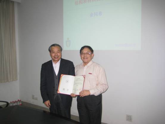 2011年11月14日下午,香港科技大學余同希教授受聘浙江大學包玉剛講座教授儀式暨學術報告會在應用力學研究所會議室舉行。授聘儀式由航空航天學院副院長黃志龍教授主持,應用力學研究所朱位秋院士、丁皓江教授、陳偉球教授、徐博侯教授、陶偉明教授等師生代表參加了儀式。黃志龍教授首先介紹了余同希教授的簡歷和學術成就,并對余同希教授表示熱烈歡迎。朱位秋院士為余同希教授佩戴校徽,并頒發了浙江大學包玉剛講座教授聘書。儀式結束后,余同希教授做了題為“結構和材料的能量吸收”的精彩學術報告,在與會師生中引起了熱烈的討論和反響。