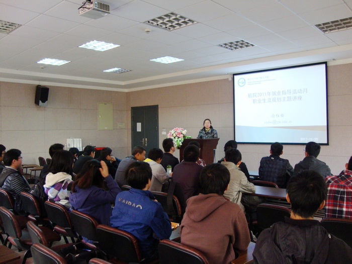 11月20日下午1點,航空航天學院就業指導活動月啟動儀式暨職業生涯規劃主題講座在教五333會議室舉行。學院黨委副書記謝紅梅老師、院團委書記戴志潛老師、2010級已確認到航院的本科生以及部分08、09級本科均參加了本次活動。