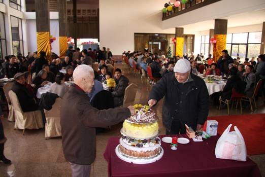 迎新團拜會上,學院表彰了2011年院級先進工作者,先進基層黨組織、優(yōu)秀共產(chǎn)黨員和優(yōu)秀黨務工作者。同時,學院還為邁進耄耋之年的14位退休教師集體祝壽,感謝他們?yōu)閷W院做出的貢獻,祝愿他們福如東海,壽比南山。隨后,便是熱鬧豐富、充滿活力的文藝表演和抽獎活動。