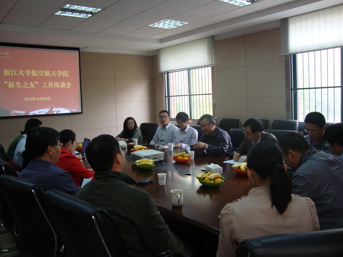 10月25日,航空航天學院在教五326會議室舉行了2012級“新生之友”座談會,副院長李平教授、藍田學園擔任班主任工作的兩位老師等16位“新生之友”教師參加了座談會,和學生們一起探討如何做好2012級的“新生之友”工作。