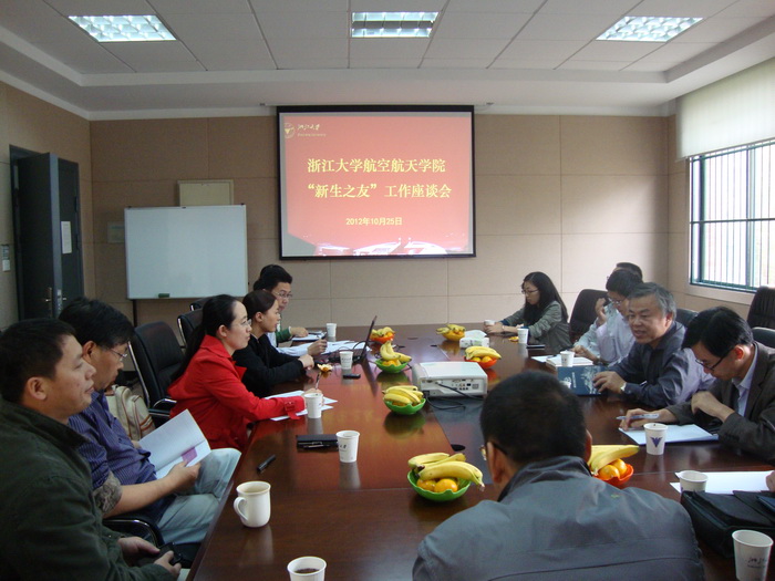 10月25日,航空航天學院在教五326會議室舉行了2012級“新生之友”座談會,副院長李平教授、藍田學園擔任班主任工作的兩位老師等16位“新生之友”教師參加了座談會,和學生們一起探討如何做好2012級的“新生之友”工作。