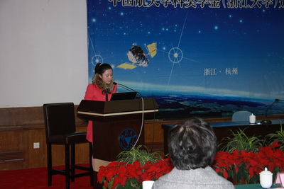 11月27日上午9:30,中國航天基金會·長城潤滑油航天學科獎學金第三屆頒獎典禮在我校玉泉校區邵科館212室隆重舉行。原中國人民解放軍總裝備部副部長、現任中國航天基金會理事長張建啟中將,原東海艦隊副政治委員余明海少將以及我校黨委任少波副書記、航空航天學院常務副院長鄭耀,副院長李平、黃志龍等出席了頒獎典禮。頒獎典禮由航空航天學院黨委書記吳丹青主持。