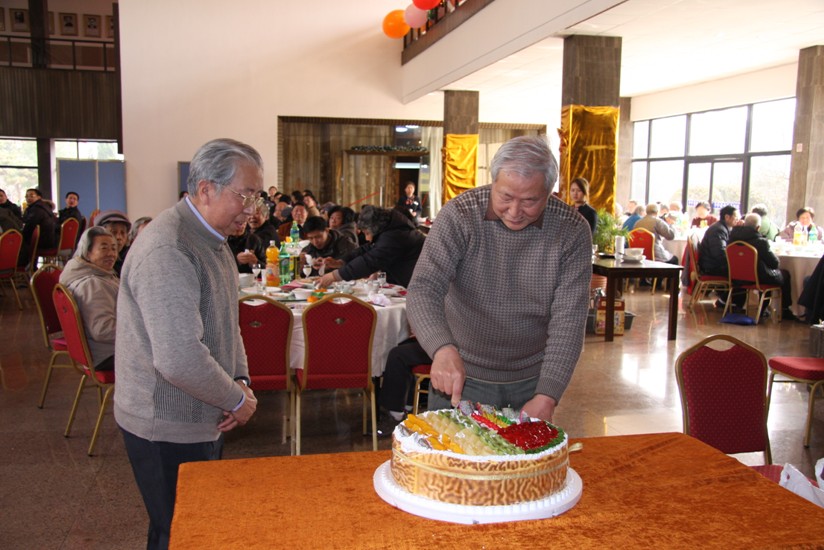 費學(xué)博、韓惠霖切集體生日蛋糕