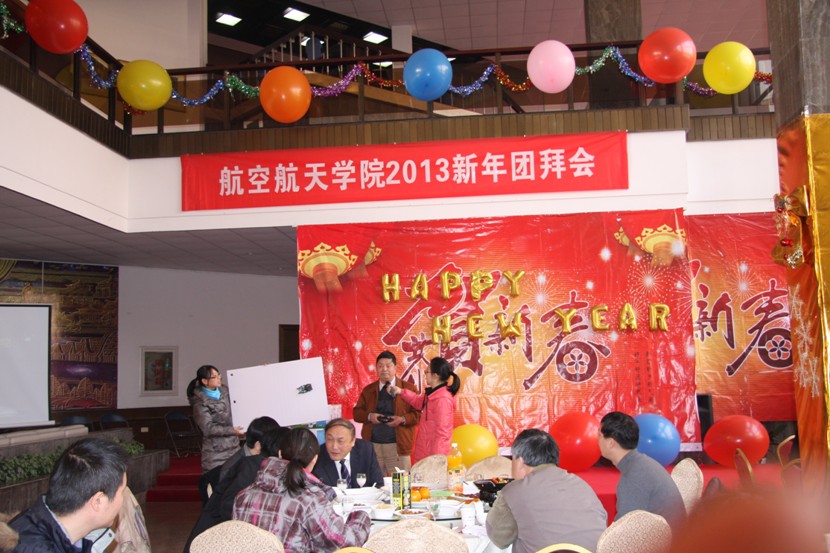 辭舊歲迎新年,同開懷共聯(lián)歡。2013年1月25日中午,航空航天學(xué)院新年團拜會在玉泉校區(qū)邵科館一樓大廳舉行。2012年新入職的教師代表應(yīng)迪清和李鐵風(fēng)共同主持了本次團拜會。全體在職與離退休教職工近200人歡聚一堂,固體力學(xué)學(xué)術(shù)帶頭人、應(yīng)用力學(xué)研究所楊衛(wèi)教授到場與學(xué)院全體老師共迎新年,共同展望學(xué)院未來的發(fā)展前景。