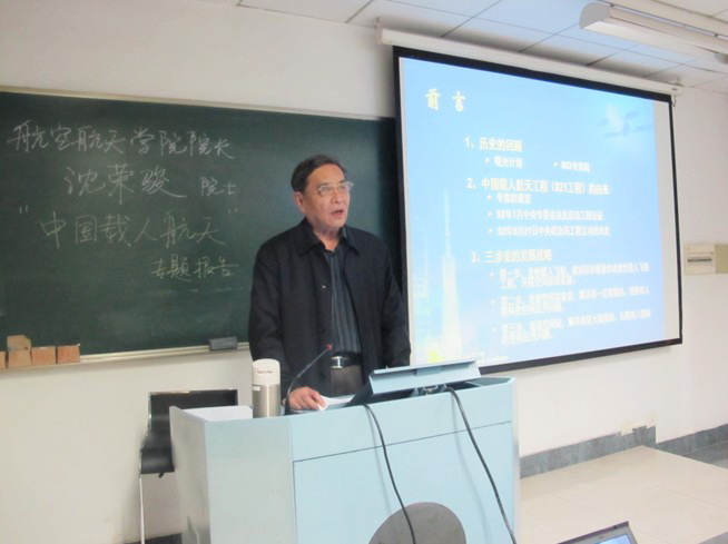 2013年4月17日19:30,浙江大學(xué)航空航天學(xué)院院長沈榮駿院士關(guān)于“中國載人航天”的專題報告在紫金港校區(qū)西2-309教室順利舉行。來自航空航天學(xué)院、浙江大學(xué)微小衛(wèi)星俱樂部以及《衛(wèi)星技術(shù)》通識課的眾多學(xué)生慕名而來,現(xiàn)場氣氛熱烈,報告會取得圓滿成功。
