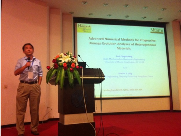 應浙江大學應用力學研究所的邀請,美國邁阿密大學機械與航空工程系楊慶大教授來我院應力所訪問,參加了在浙大玉泉校區邵逸夫科學館舉辦的“固體力學及其應用學術研討會”,并作了題為“Advanced numerical methods for progressive damage evolution analyses of heterogeneous materials”的學術報告。