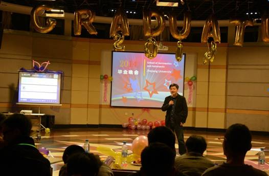 “后青春期的詩”航空航天學(xué)院畢業(yè)生晚會于3月23日晚18:30在永謙活動中心三樓多功能活動廳隆重舉行。航空航天學(xué)院院黨委書記吳丹青,副院長邵雪明、黃志龍,院黨委副書記戴志潛,團(tuán)委副書記秦婧雅,流體所副所長王燦星老師,應(yīng)力所固體力學(xué)實驗室主任羅銀淼老師以及航空航天學(xué)院全體學(xué)生共同觀看了這場精彩的晚會。副院長邵雪明老師為此次晚會致辭,表達(dá)了他對畢業(yè)生的美好愿望以及對在校生的殷切期望。晚會分為“青春活力”、“似水年華”、“終點起點”三個篇章,并穿插游戲互動環(huán)節(jié)。
