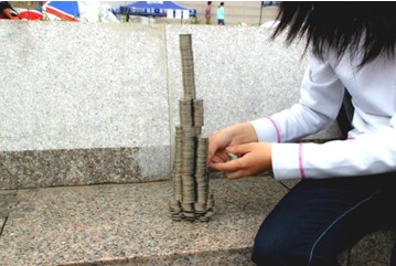 此次比賽采取現(xiàn)場報名的方式,同學(xué)們的熱情也讓報名點(diǎn)前排起了長龍。短短幾個小時,報名參賽的同學(xué)近200人。不管是力學(xué)專業(yè)的同學(xué)還是對對力學(xué)結(jié)構(gòu)十分感興趣的其他專業(yè)的同學(xué)都摩拳擦掌,準(zhǔn)備大顯身手,他們根據(jù)自己對力學(xué)結(jié)構(gòu)的理解,不斷完善自己的作品。活動組為現(xiàn)場同學(xué)準(zhǔn)備了重達(dá)30斤的3000枚一元硬幣,但是依然沒能完全滿足同學(xué)參賽的熱情。甚至有同學(xué)在等不到多余硬幣的情況下,自帶800多枚硬幣參加了比賽,熱情程度可見一斑。活動不僅吸引了浙大的同學(xué)們參賽,也吸引了很多教職員工進(jìn)行觀看,更有浙大的老教授現(xiàn)場對選手的作品進(jìn)行點(diǎn)評和稱贊。