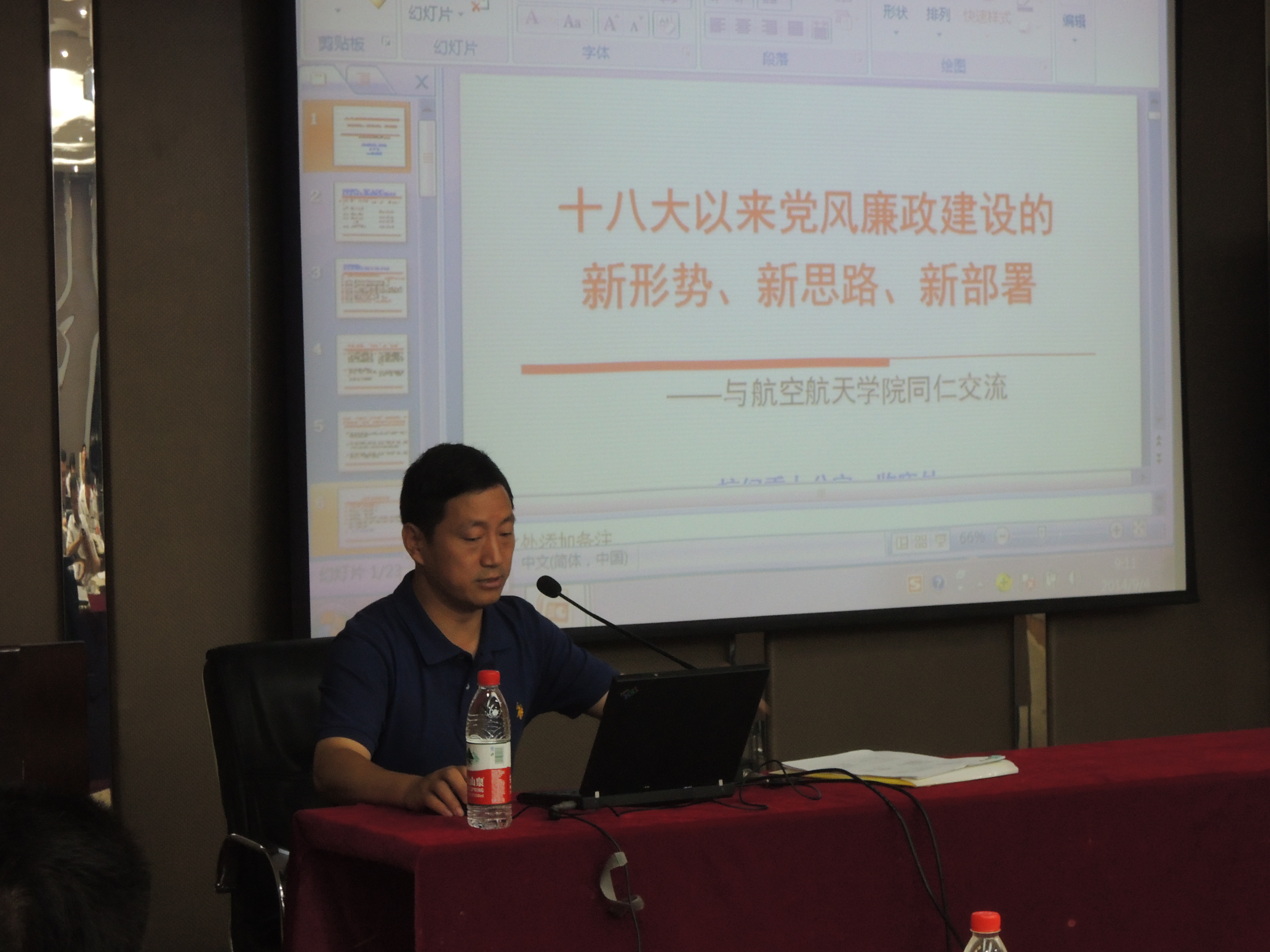 會上,張子法老師介紹了以習(xí)近平總書記為首的中央領(lǐng)導(dǎo)集體在黨風(fēng)廉政建設(shè)方面的新形勢、新思路、新部署,列舉了在中央反腐高壓下落馬的“老虎”與“蒼蠅”,分析了中央反腐的新做法:反腐面前無特權(quán)、無特例、無特區(qū),闡述了中央在治標(biāo)與治本方面的思路與部署等。