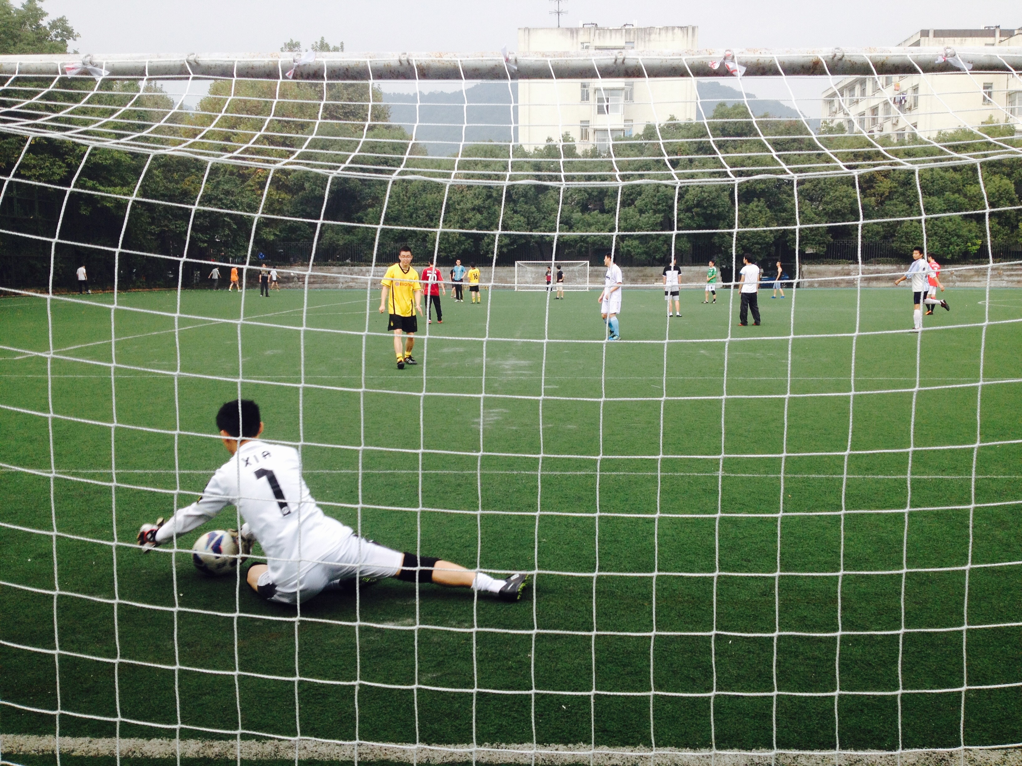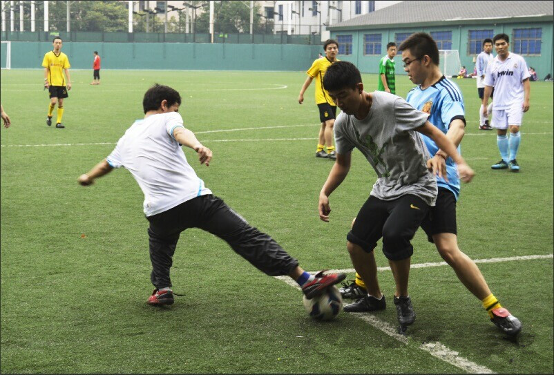 隨后進行的足球正賽,由流體所和應力所組成的聯隊,對抗航空系和本科生組成的聯隊。比賽伊始,雙方隊員就爆發出了強勁的實力,航空和本科聯隊發揮體能好的優勢,頻頻使用快攻的戰術,終于再一次傳中過程中,由于流體和應力聯隊的球員不慎,自擺烏龍,航空和本科聯隊取得了一球的領先。但是流體和應力連隊并沒有自亂陣腳,迅速調整節奏,相互配合,很快就扳平了比分。隨后比賽雙方膠著進行,雙方球員精彩的拼搶、精準的射門時時發生,贏得了周圍觀眾的熱烈歡呼。再上半場即將結束之時,風云突變,由于流體和應力聯隊,再兩次快速反擊中,撕裂了對方的防守,攻入了兩球,使得比賽達到了高潮。