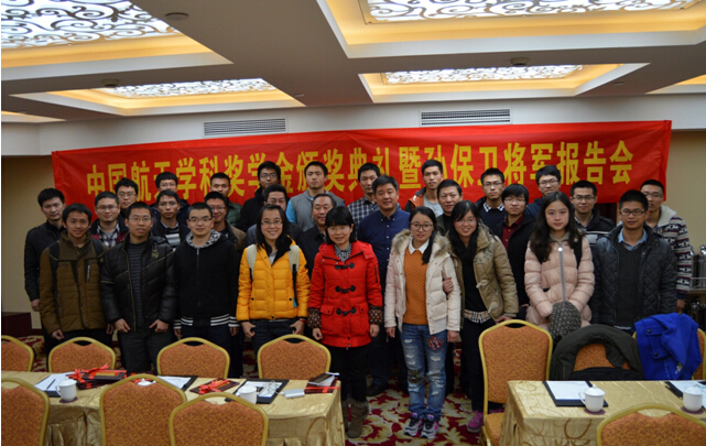 副院長邵雪明教授宣讀了我院2013-2014學年航天學科獎學金獲獎的學生名單,對他們的獲獎表示祝賀并邀請他們上臺領獎。孫保衛將軍、魏華春部長、邵雪明副院長以及戴志潛副書記為獲獎學生頒發榮譽證書并合影留念。