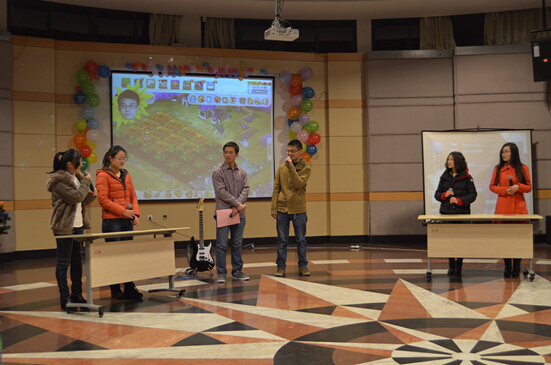 2014年12月25日晚上7:00,由我院和數學系共同舉辦的《數航雙“蛋”聯歡晚會》在浙江大學玉泉校區永謙活動中心B座三樓多功能活動廳隆重舉行。出席本次晚會的嘉賓有:航空航天學院團委書記秦婧雅老師、數學系團委書記蔡云老師、輔導員林斌斌老師、信息與電子工程學系研博會主席程東、能源工程學院研博會主席朱子欽、生物醫學工程與儀器科學學院研博會副主席王鋆川、高分子科學與工程學系研會副主席何藹、機械工程學院博會主席代建俊、控制科學與工程學系研博會主席馬信達等。來自兩院系的近三百名學生參加了聯歡活動。