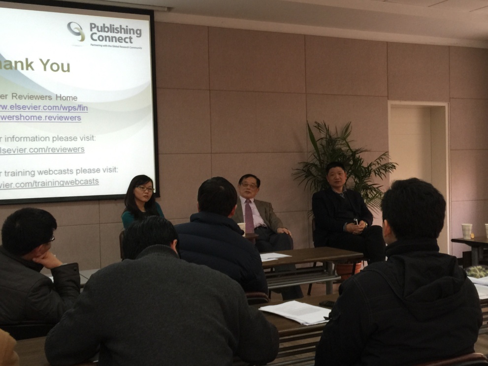 張靖博士首先從出版業(yè)本身出發(fā),對出版業(yè)的歷史和目前狀況做了回顧,并簡單對期刊審稿現(xiàn)狀、審稿人扮演的角色、以及如何做一個稱職的審稿人進行了介紹。余同希教授則從主編的角度對審稿過程中許多大家關心的問題進行了解釋,如審稿周期、審稿人的關注點、以及主編如何做出決定等等。在茶歇之后,余教授和張博士又與在座的老師和同學們進行了面對面的交流,并對大家提出的問題進行了詳細的解惑。余教授還以自己編輯過的兩篇論文為例對當時的審稿意見進行了逐句的講解,籍此說明了審稿的要點。