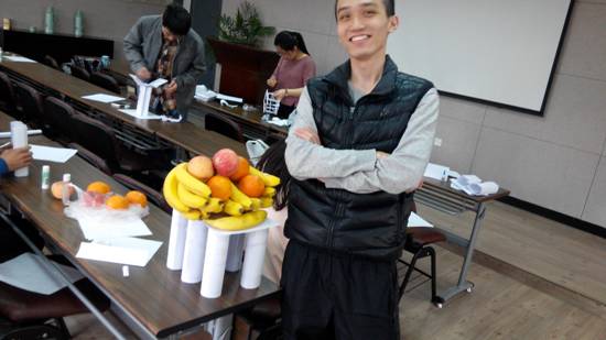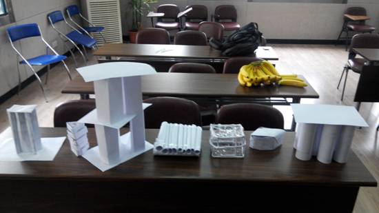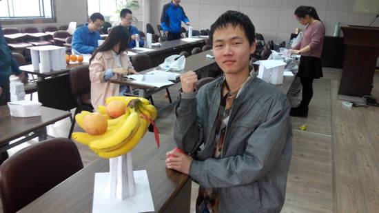結(jié)構(gòu)設計比賽的內(nèi)容是利用生活中常見的紙張,剪刀,膠帶,搭建起有一定空間結(jié)構(gòu)并有一定高度的結(jié)構(gòu),并能承載較大重量的結(jié)構(gòu),最后綜合承重比,美觀性和高度等因素,采取不記名投票的模式評選出一二三等獎,并頒發(fā)獎品。同學們集思廣益,各自采取自己的方案,制作出一個個精巧的結(jié)構(gòu),在制作過程中,大家互相討論,氣氛融洽,在制作過程也享受了與他人交流的過程。最后,我們請到了力學系趙沛老師為我們進行了點評講解,讓我們更加深刻地理解了其中的力學知識。