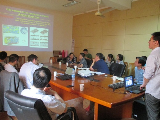 在交流的第二部分,流體所余釗圣教授介紹了流體所在顆粒多相流、空泡水動力學,葉輪流體機械、拍動翼海流能采集和流動穩定性,仿生流體力學等方面的工作。隨后,中科院胡國慶研究員介紹了在微納米流體力學、生物分子/顆粒/細胞/液滴輸運及操控、微納流控器件設計方面的工作。Emmanuel de Langre教授對流體所所做的工作表示贊賞,并指出流體所的很多工作是當前的研究熱點,也非常適合發表在Journal of Fluids and Structures上,歡迎流體所向Journal of Fluids and Structures投稿。