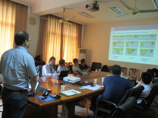 在交流的第二部分,流體所余釗圣教授介紹了流體所在顆粒多相流、空泡水動力學,葉輪流體機械、拍動翼海流能采集和流動穩定性,仿生流體力學等方面的工作。隨后,中科院胡國慶研究員介紹了在微納米流體力學、生物分子/顆粒/細胞/液滴輸運及操控、微納流控器件設計方面的工作。Emmanuel de Langre教授對流體所所做的工作表示贊賞,并指出流體所的很多工作是當前的研究熱點,也非常適合發表在Journal of Fluids and Structures上,歡迎流體所向Journal of Fluids and Structures投稿。