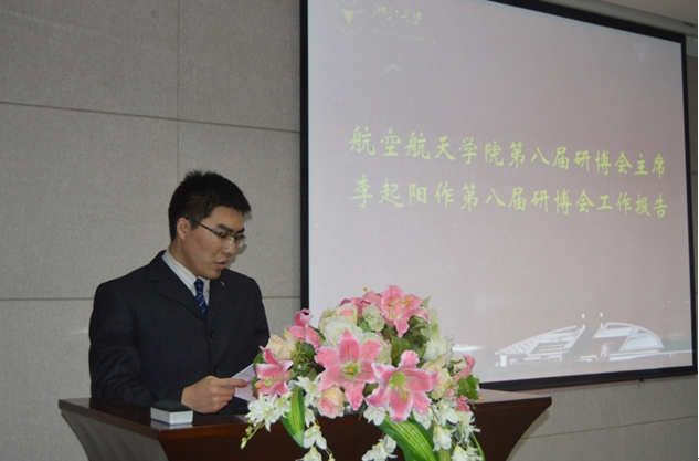 學(xué)院第八屆研博會主席李起陽同學(xué)代表第八屆研博會主席團(tuán)向大會作工作報告,報告以“全心全意為研究生服務(wù),群策群力促學(xué)院發(fā)展,努力開創(chuàng)研博會工作新局面”為主題,對上一屆研博會的主要工作做了全面的總結(jié)。他從學(xué)院研博會現(xiàn)狀、工作回顧、工作展望和總結(jié)四個部分,回顧了過去一年研博會開展的各項活動與工作,并就工作中的一些經(jīng)驗和不足之處,對新一屆研博會提出了寶貴的建議。