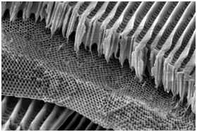 所采用的gyroid結構是典型的三重周期極小曲面,是自然界中常見的一種自組織結構,由Alan Schoen于1970年發現,它看似復雜,其實可用一個簡單的等曲面方程cos(x)sin(y) + cos(y)sin(z) + cos(z)sin(x) = 0定義。生活中最為常見的gyroid結構存在于色彩斑斕的蝴蝶翅膀中,是蝴蝶翅膀的基本顯微結構,通過對可見光的反射與折射,可產生不同的色彩。