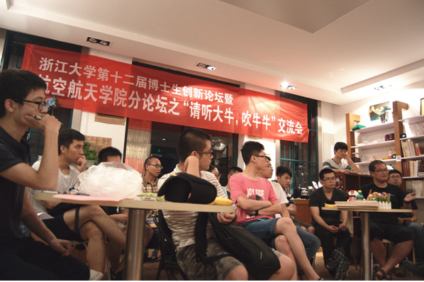 2016年6月27日晚19時,浙江大學第十二屆博士生創新論壇——航空航天學院分論壇之“請聽大牛,吹牛牛”交流會在玉泉校區教五-J526咖啡吧正式開幕。此次交流會邀請到了應用力學所新晉“長江學者”、“全國優秀科技工作者”陳偉球教授,陳教授從自身求學經歷與科研經驗出發給同學們分享了一次生動活潑的交流報告,并悉心指導和解答了在座的博士生們在學術與生活中遇到的各種問題。航空航天學院榮休老教師莊表中教授、負責宣傳工作的王輝老師以及浙江大學博士生會副主席葉志賢等人也參與了本期活動。