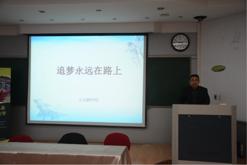 頒獎儀式之后,中國航天基金會秘書長助理吳杰大校作了以“追夢永遠在路上”為主題的報告。吳大校講述了我國載人航天事業從無到有、從弱到強的發展歷史,并結合他的親身經歷,讓同學們了解我國載人航天事業曾經克服的種種困難。吳大校指出,吃苦也是一種歷練,鼓勵大家要珍惜青春,敢闖敢拼、獨立自主,做有責任、有擔當的好青年。