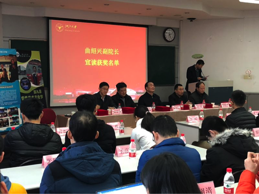20171222日下午,浙江大學航空航天學院第八屆中國航天學科獎學金頒獎典禮暨第九屆空天學術文化節閉幕式在浙大玉泉校區教七306隆重舉行。本次頒獎典禮由學院黨委副書記戴志潛主持。中國航天基金會專家咨詢委員會主任張玉江將軍、中國航天基金會秘書長助理吳杰大校、中國航天基金會專家咨詢委員會主任秘書王強、浙江大學黨委學工部副部長吳子貴、浙江大學航空航天學院常務副院長邵雪明、浙江大學航空航天學院黨委書記畢建權、浙江大學航空航天學院副院長曲紹興老師等人出席了頒獎儀式。參加本次典禮的還有第八屆中國航天學科獎學金獲得者以及學院本科生代表、研究生代表等。