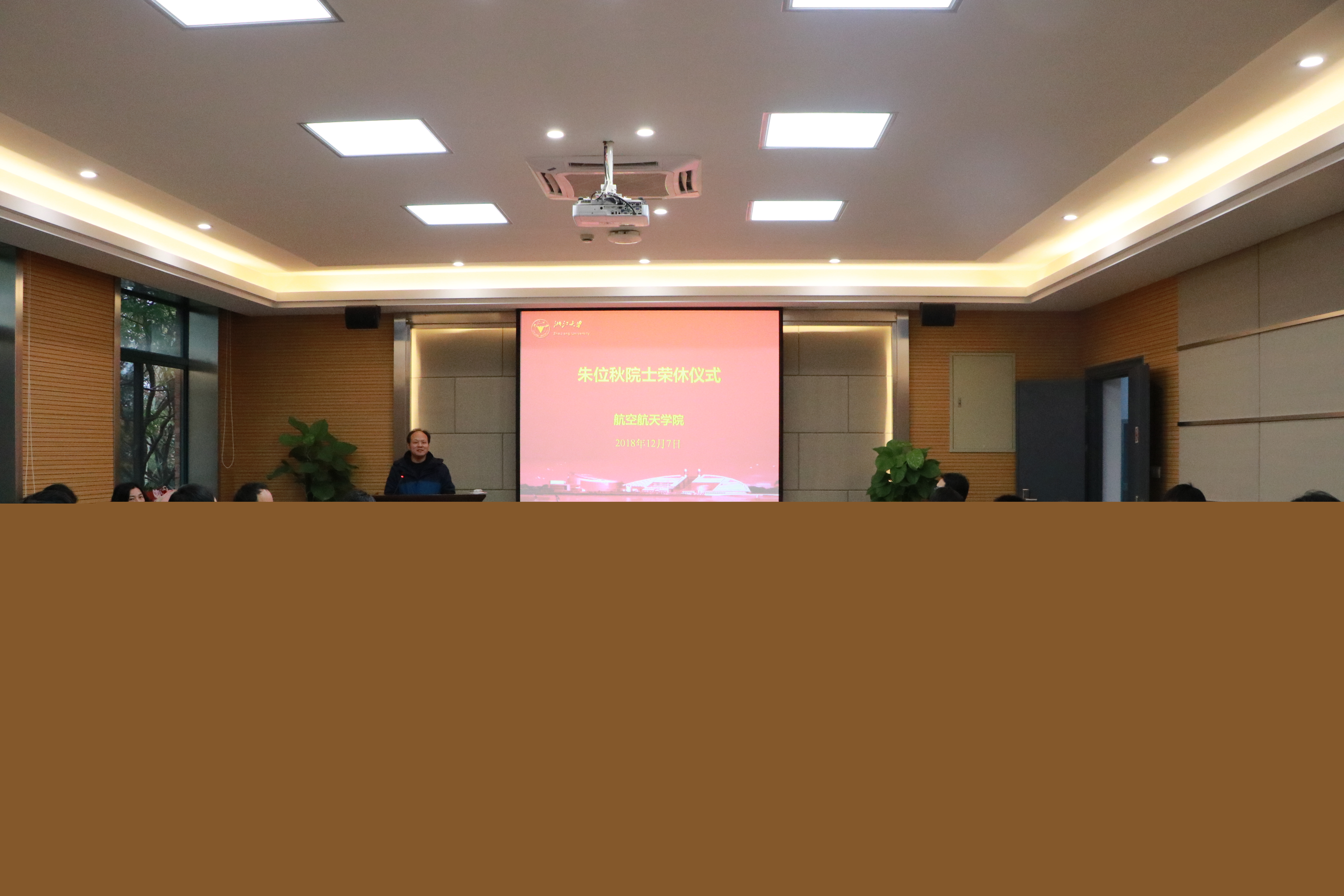 12月7日下午,教五333會議室暖意融融,飽含著朱位秋院士經(jīng)歷的《一路走來》PPT展映拉開了榮休儀式的序幕。這是一場對朱院士跨越兩個世紀(jì)攀登力學(xué)研究高峰歷程的回顧和致敬,也是一場對全院師生“弘揚(yáng)愛國奮斗精神,建功立業(yè)新時代”的教育和啟迪。榮休儀式由學(xué)院黨委書記畢建權(quán)主持,學(xué)院班子成員、工程力學(xué)系在職教師、航空航天系教師代表、學(xué)院機(jī)關(guān)教師、應(yīng)用力學(xué)研究所等學(xué)生代表60余人參加。
