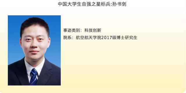 孫書劍,浙江大學(xué)航空航天學(xué)院2017級(jí)博士研究生,浙江省向上向善好青年、浙江省國家獎(jiǎng)學(xué)金獲得者典型事跡巡回報(bào)告團(tuán)成員、“優(yōu)秀學(xué)長進(jìn)思政課堂”主講人,長期堅(jiān)持在思想引領(lǐng)和科普教育第一線。個(gè)人事跡被中國青年報(bào)、浙江大學(xué)官微等多個(gè)校內(nèi)外權(quán)威媒體專題報(bào)道。