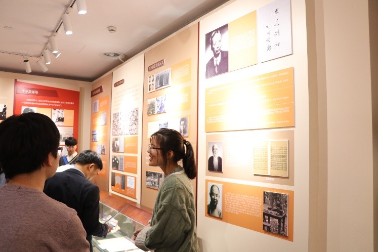 在“浙江大學(xué)黨建工作主題展”參觀過程中,師生們了解到浙江大學(xué)在中國共產(chǎn)黨的領(lǐng)導(dǎo)下櫛風(fēng)沐雨,弦歌不輟的發(fā)展歷程。浙江大學(xué)將愛國理念深深植入自身的發(fā)展進程,積極培育英才,成為大學(xué)教育的榜樣。黨建館內(nèi)展示了浙大師生積極投身五四愛國運動、進行文軍長征以傳承文脈、建國后服務(wù)大局進行院系調(diào)整等重大事件,可見在每一個歷史節(jié)點都有浙大人的身影。以竺可楨、于子三、程開甲、林俊德等人為代表,一代代出身浙大的共產(chǎn)黨人無一不詮釋著“求是”精神,這讓參觀的師生感到無比自豪。