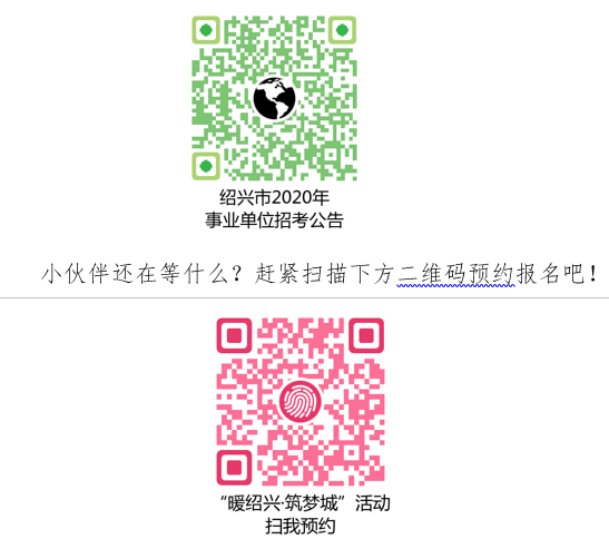 紹興市2020年第一次公開招聘事業單位工作人員正在報名中,有興趣的同學可以自行掃碼查看公告,截止日期是5月10號哦!千萬別錯過了!