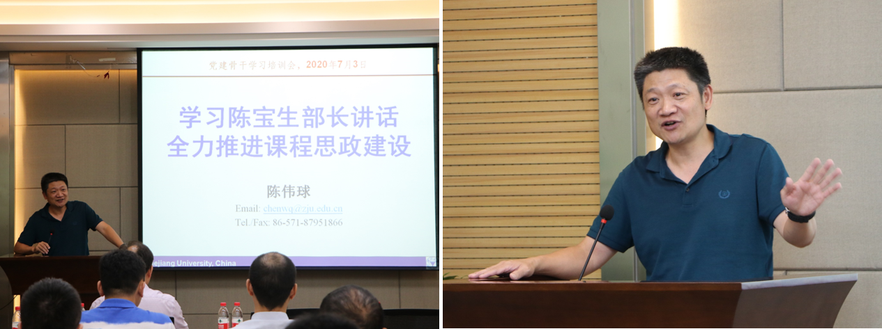 在建黨99周年之際,為貫徹落實黨中央關于常態化疫情防控的決策部署,讓黨旗始終高高飄揚在疫情防控、返校復學、事業發展全過程全方位,根據學校有關要求,學院黨委結合實際,在全院組織開展“黨旗飄揚悟初心,西遷精神明使命,‘疫’同厚植求是魂”主題黨日活動。7月3日,在玉泉校區教五333會議室召開黨建骨干學習培訓會,由學院榮獲浙江大學優秀黨員稱號的高琪老師、黨委書記畢建權、常務副院長陳偉球為全體支部書記和支委上黨課,并作黨建業務培訓。會議由學院黨委副書記戴志潛主持。