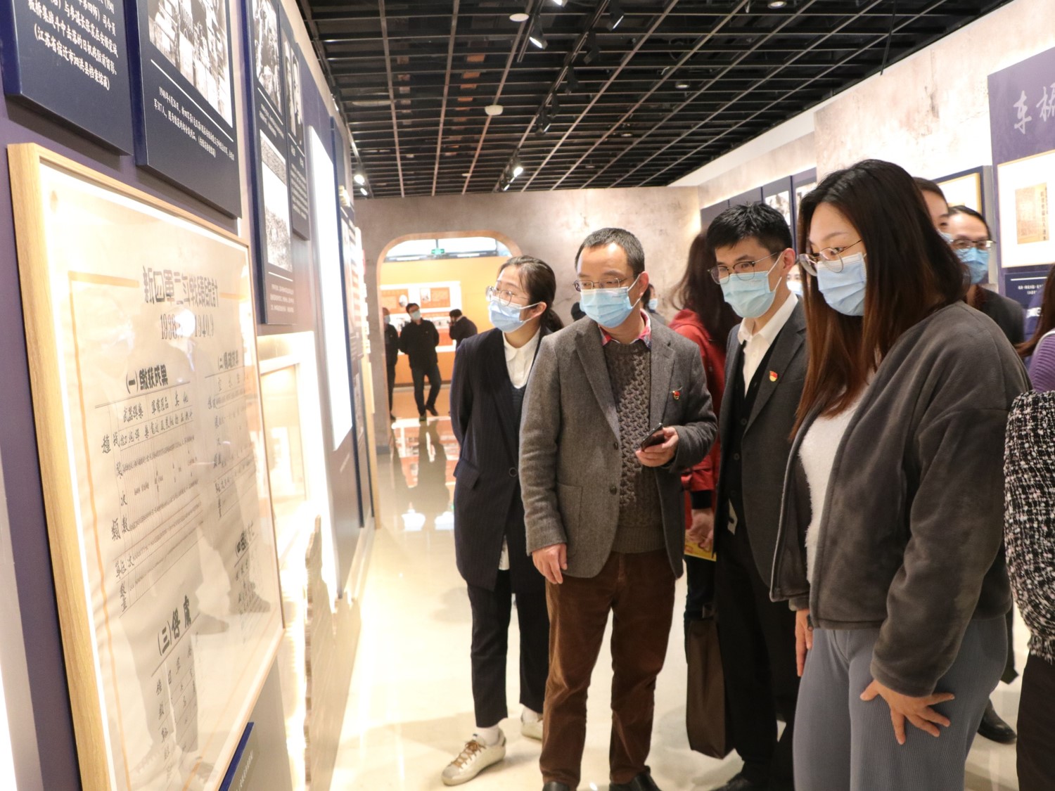 師生在一件件鐫刻著中國共產黨紅色根脈和精神族譜的珍貴展品前駐足觀看,在仔細觀看展板、實物、圖片和影像資料的同時,不時交流感悟,了解其背后的故事。黨員同志們感悟道,長三角地區是中國共產黨的發源地,是中國革命的“搖籃”,建黨百年來,中國共產黨不忘為中國人民謀幸福,為中華民族謀復興的初心使命,矢志不渝,團結帶領人民歷經千難萬險,創造了一個又一個彪炳史冊的人間奇跡。在長三角地區這片土地上,黨和人民堅守初心,不斷開拓前行道路,弘揚黨的優良傳統,譜寫了一首首可歌可泣的英雄詩篇。