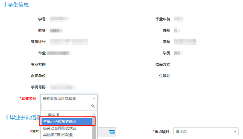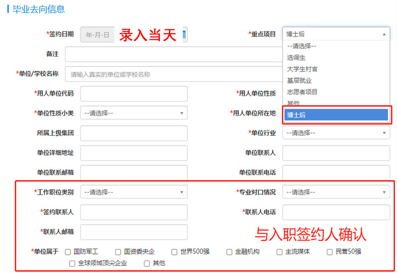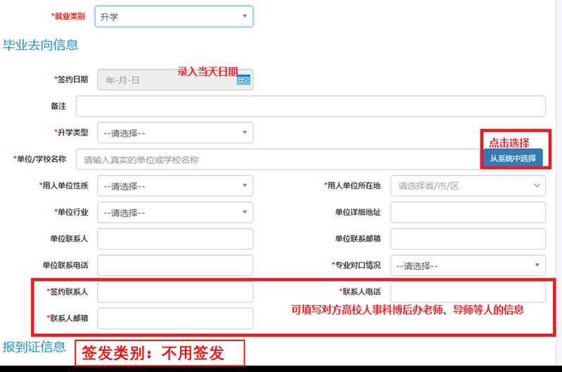 出國(境)(包括攻讀研究生、做博士后)、境內升學(考研、保研)、國內做博士后的同學,雖然不簽訂就業三方協議,但仍需將畢業去向、檔案寄送、戶口遷移等信息錄入管理系統,以便后續開具報到證(境內升學無需開報到證)、寄送檔案等。