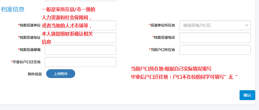以上信息檢查并確認無誤后,請到:左側導航欄—就業方案確認—報到證信息和檔案信息