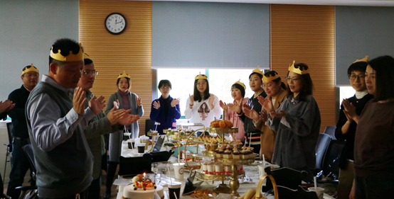 彩燈閃爍,生日歌響起,陳偉球老師親手為老師們遞上香甜的蛋糕,送上了誠摯的祝福,讓老師們感受到了濃濃的暖意。祝福滿滿的蛋糕,精致可口的點心,讓參加生日會的每一位教職工都感受到了濃濃的溫情。
