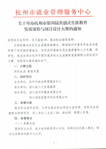 為持續(xù)推動(dòng)共創(chuàng)式生涯教育新模式,幫助杭州市青年學(xué)生在當(dāng)前形勢(shì)下實(shí)現(xiàn)高質(zhì)量就業(yè),夯實(shí)共同富裕示范區(qū)高質(zhì)量的人才支撐,杭州市就業(yè)管理服務(wù)中心主辦、浙江省人才發(fā)展集團(tuán)承辦的杭州市第四屆共創(chuàng)式生涯教育發(fā)展課程與項(xiàng)目設(shè)計(jì)大賽已于4月8日正式啟動(dòng)報(bào)名,想了解大賽具體情況的伙伴可以看過(guò)來(lái)哦!