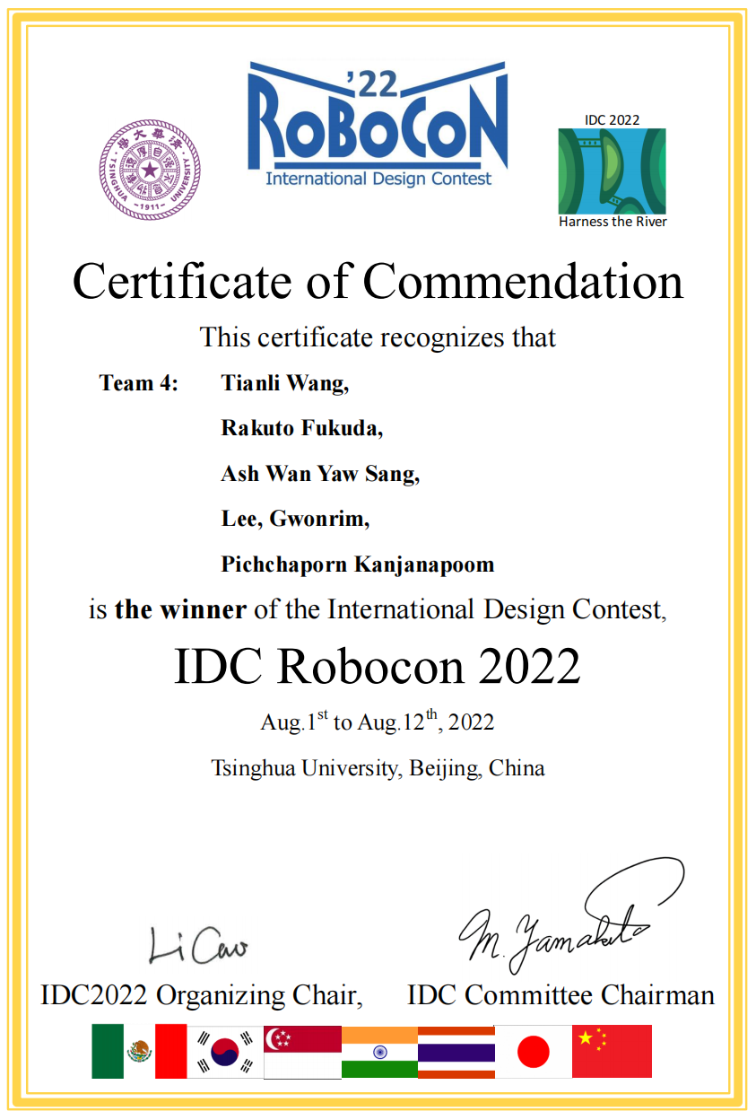經歷為期12天的比賽,王天力同學最終獲得了IDC國際機器人設計大賽的第一名,IDC Robocon比賽全稱為International Design Contest,是日本NHK Robocon的三大賽事之一,最早是日本東京工業大學和美國麻省理工學院機械創意設計課程的交流,后得到多所世界頂級工科院校響應。該比賽從1990年開始至2022年已成功舉辦32屆,日本、美國、英國、德國、法國、韓國、泰國、巴西、摩洛哥、新加坡及中國的大學都相繼承辦過。在12天的比賽周期中,來自世界各地的參賽學生將會重新進行分組,與自己的新隊友一起根據公布的賽題設計機器人。