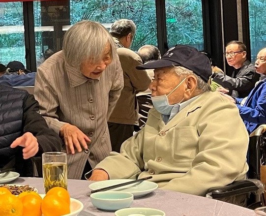 茶敘后,退休教師們一起在山外山菜館餐敘,大家一邊品嘗美食,一邊暢談生活,聊聊彼此的身體狀況,分享各自的養生之道。