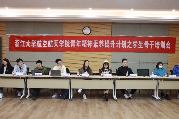 11月4日下午16:15,浙江大學航空航天學院青年精神素養提升計劃之學生骨干培訓會在浙江大學玉泉校區教5-333會議室順利舉行。先研院副院長馬振琨老師,學院黨委副書記季湘銘老師,團委書記王曉民老師出席本次會議,航院學生會、研博會、新媒體中心、就業中心、雙創創新創新教育中心秘書處、黨員素質發展黨素中心、兼職輔導員以及航模隊骨干成員參與本次會議。會議由院團委副書記任奇老師主持。