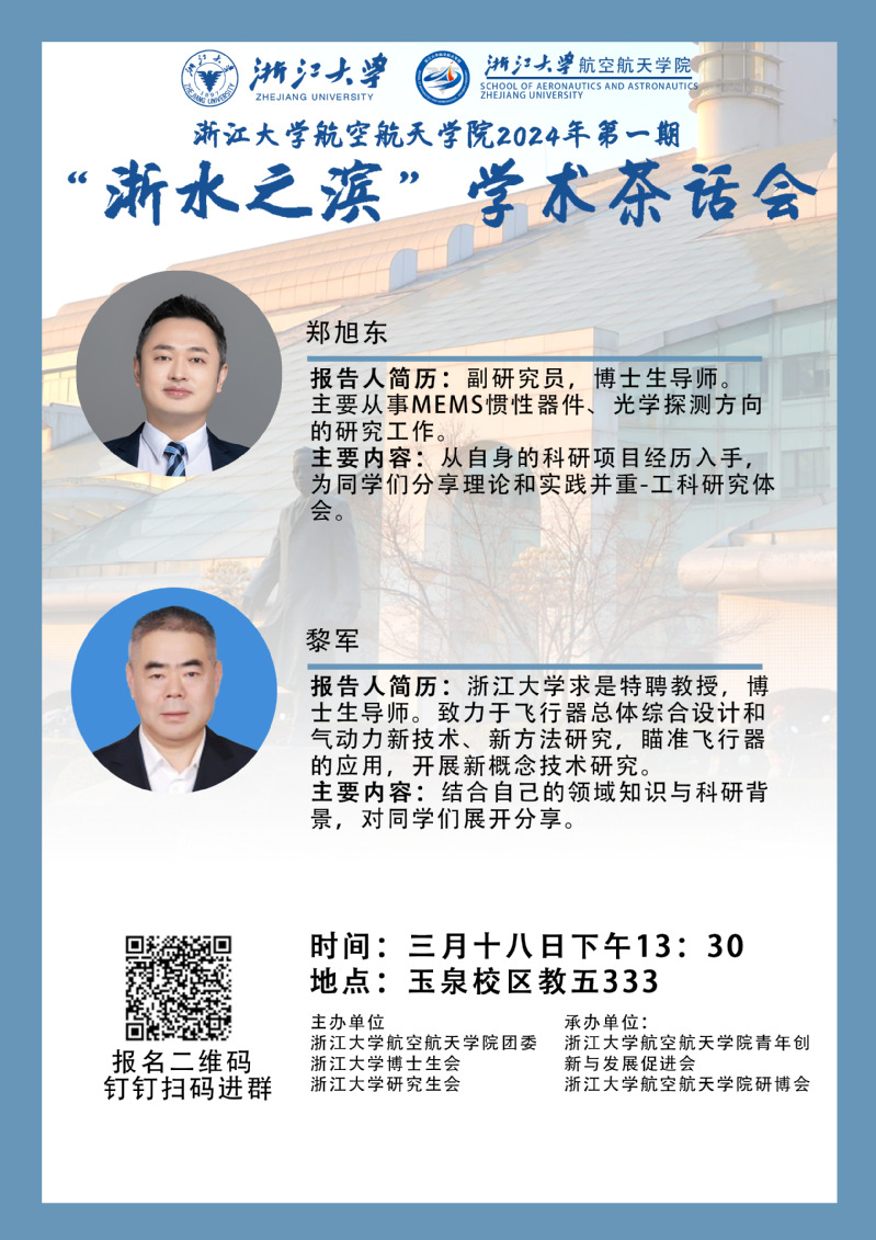 為了幫助航院學子以良好的狀態(tài)展開科研工作,引導他們跨過研究生階段的迷茫溝壑,為其提供必要的學習信息和發(fā)展經(jīng)驗,航空航天學院研博會特舉辦2024年第一期“浙水之濱”學術茶話會,具體通知如下: