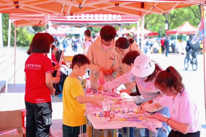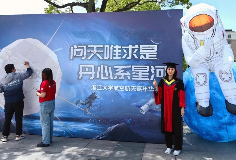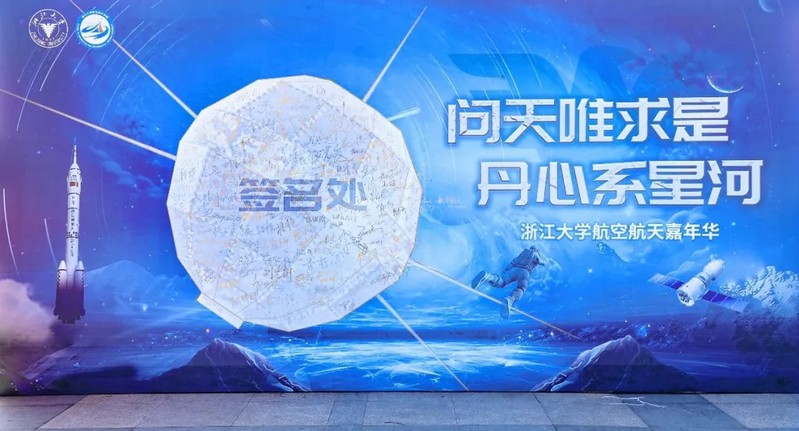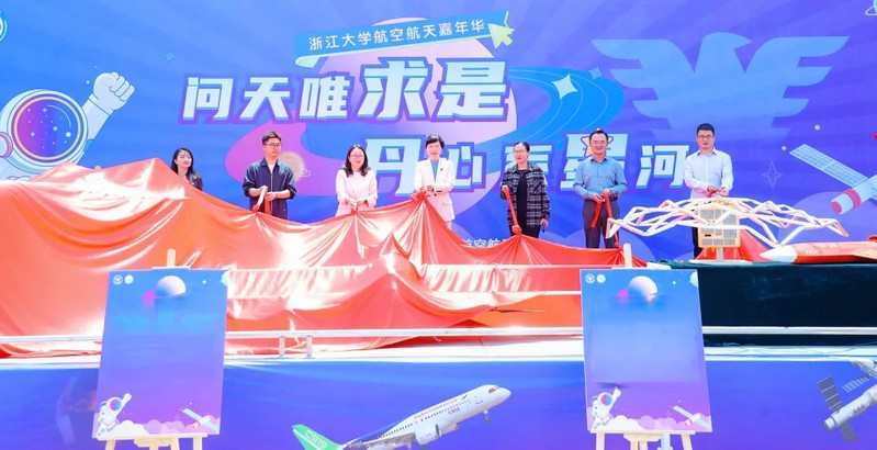 2024年4月24日,是第九個(gè)“中國(guó)航天日”。浙江大學(xué)紫金港校區(qū)文化廣場(chǎng)晴空萬(wàn)里,似火驕陽(yáng)不褪師生熱情。一場(chǎng)以“問(wèn)天唯求是,丹心系星河”為主題的航空航天嘉年華活動(dòng)盛大開(kāi)幕——來(lái)自航空航天學(xué)院、浣江實(shí)驗(yàn)室?guī)熒灾餮邪l(fā)的一件件科研成果實(shí)物;來(lái)自航天科工集團(tuán)、航天科技集團(tuán)、中國(guó)空間技術(shù)研究院杭州中心、浙江大學(xué)交叉力學(xué)中心的一款款航空航天模型;“執(zhí)筆匯蒼穹”“重走航天路”“共繪東方紅”等一個(gè)個(gè)有趣的主題攤位,吸引了近萬(wàn)名師生參觀(guān)體驗(yàn),在求是園中掀起了一股航空航天熱。