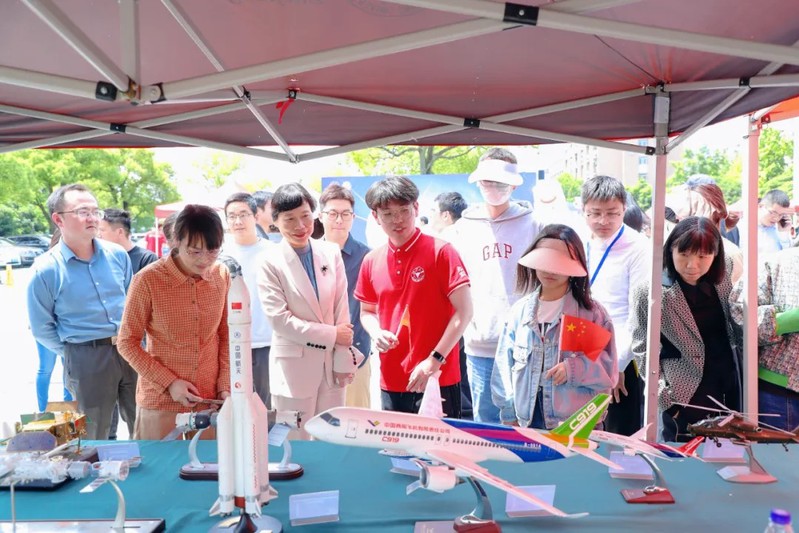 科研成果和航模展覽吸引了大批海內(nèi)外師生參觀(guān),人群中不時(shí)爆發(fā)出歡呼聲和驚嘆聲。