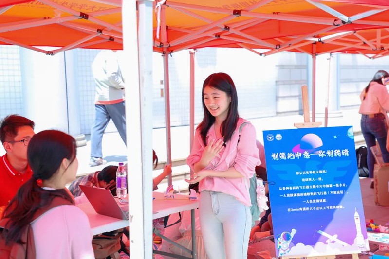“我與航天日”“重走航天路”“魔法重現(xiàn)術(shù)”“尋找力學(xué)家”……12個(gè)航空航天主題活動(dòng)攤位前人頭攢動(dòng),手持模擬操縱桿體驗(yàn)“飛行員”,現(xiàn)場(chǎng)快問(wèn)快答重溫中國(guó)航天追星逐夢(mèng)的激蕩歲月,手繪風(fēng)箏寄托著師生對(duì)飛天夢(mèng)的希望與憧憬,精彩有趣的互動(dòng)讓現(xiàn)場(chǎng)師生在這個(gè)特別的日子里共同感受中國(guó)航天 “扶搖直上九萬(wàn)里”的壯志豪情。
