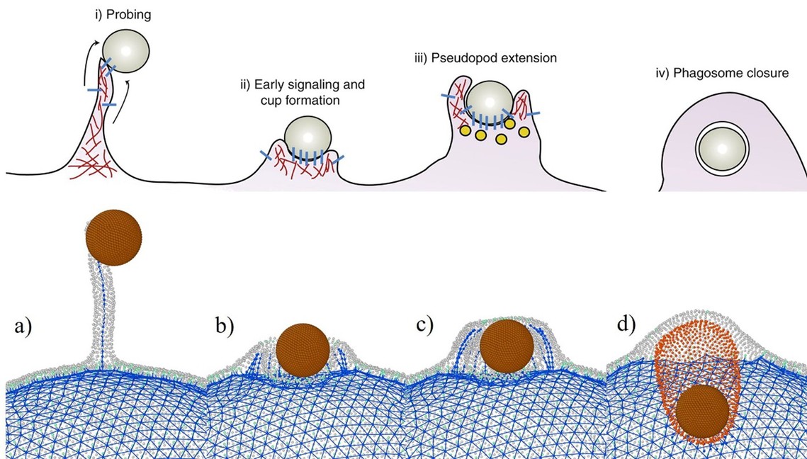 巨噬細胞是是一種廣泛分布于全身的免疫細胞,在先天性免疫和獲得性免疫反應中都起著重要作用。其中,吞噬作用是指巨噬細胞識別并吞噬病原體或其他異物(包括腫瘤細胞以及自身衰老和異常的紅細胞等)的過程,涉及細胞形態改變、骨架重構、表面粘附、細胞突出和信號轉導等復雜的協同行為。這一過程引起了生物物理和生物力學領域的廣泛關注。長期以來,研究人員致力于發展理論模型來解析在此過程中巨噬細胞如何有效變形并完成吞噬,但現有模型往往無法考慮細胞骨架重構和細胞膜-細胞骨架相互作用,導致模型分析與實驗數據出現較大差異。為此,從巨噬細胞結構出發構建包含細胞膜和細胞骨架信息的細胞力學模型,可為從分子到細胞等不同層面探究吞噬過程中細胞膜和細胞骨架的動力學行為提供新途徑。