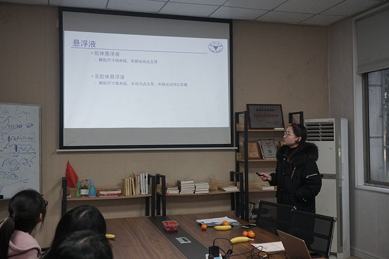 本次活動,由主講人戚曉菁同學作了題為《血紅細胞通過狹縫的流動變形特征及滯留影響因素分析》的邀請報告;張安琪同學作了題為《非膠體懸浮液非牛頓流體特性的流變實驗研究》的邀請報告;蔣一揚同學作了題為《纖維性質和粘性力對柔性纖維流化床的影響研究》的邀請報告。報告內容干貨滿滿,現場交流環節氣氛熱烈,大家收獲頗豐。